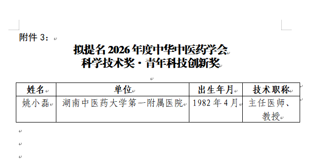 3.拟提名2026年度中华中医药学会科学技术奖·青年科技创新奖