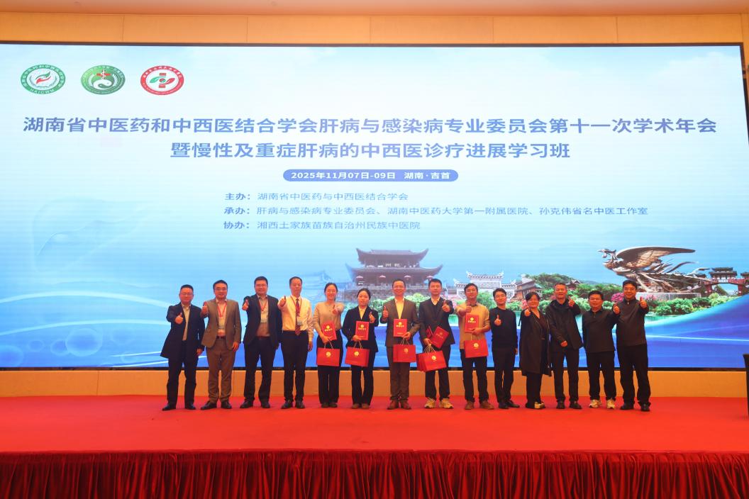 2025年11月7日—9日由湖南省中医药和中西医结合学会主办,肝病与感染病专业委员会、湖南中医药大学第一附属医院、孙克伟省名中医工作室承办,湘西土家族苗族自治州民族中医院协办的湖南省中医药和中西医结合学会肝病与感染病专业委员会第十一次学术年会暨慢性及重症肝病的中西医诊疗进展学习班在吉首成功召开。来自全省14个市州的200余名肝病与感染病骨干医生参加了此次培训。