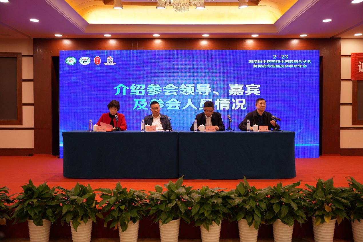 来自全省各地中医脾胃病、中西医结合消化学界的专家、学者欢聚长沙。会议期间,湖南中医药大学第一附属医院书记程博致开幕词,湖南省中医药和中西医结合学会副秘书长刘振宇,湖南中医药大学第一附属医院副院长陈青,湖南省中医药和中西医结合学会脾胃病专委会主任委员喻斌出席会议开幕式并讲话。开幕式由湖南中医药大学第一附属医院陈青副院长主持。