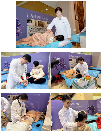 活动现场,专委会组织了一支强大的专家团队,由专委会主任委员、中医附一针灸推拿康复中心主任娄必丹教授,针灸推拿康复中心学科带头人章薇教授领衔,专委会副主任委员潘江副教授、秘书罗容副主任医师等共同参与。活动涵盖了针刺、艾灸、耳穴、穴位敷贴、推拿、盆底康复咨询等一系列具有中医特色的妇产科疾病针灸综合治疗项目,专家们在中医附一至和楼一楼大厅为患者提供高品质免费针灸推拿体验。